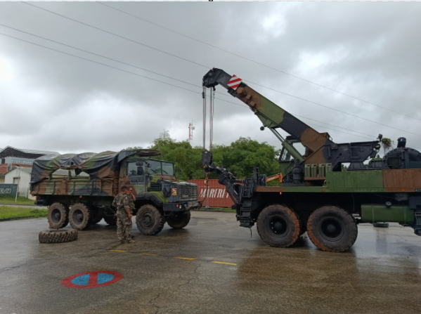 Après une pause déjeuner où les élèves ont pu découvrir les rations de combat, la séquence de l’après-midi a mis l’accent sur les savoir-faire techniques en conditions réelles notamment la démonstration de dépannage : La compagnie a réalisé une simulation de dépannage léger et lourd en contexte de combat, illustrant la réactivité nécessaire sur le terrain. La visite s’est conclue par les ateliers d’approvisionnement, mettant en lumière le rôle crucial de la compagnie dans le soutien logistique de l’ensemble des unités des FAG.